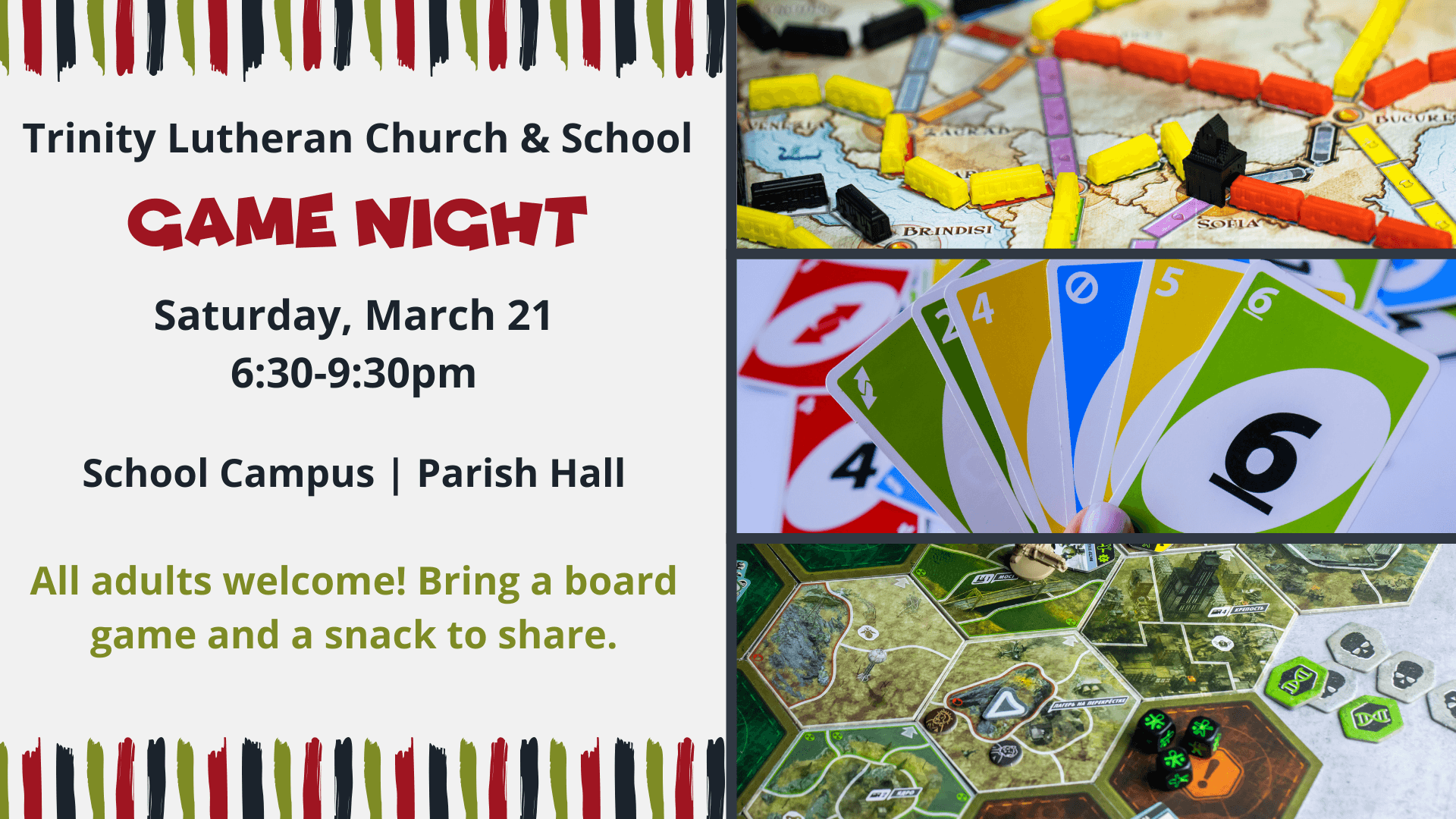 Do you love board games? Come to Game Night! This event happens every other month and is sponsored by The Crowd – a group for Trinity members and friends (18 years and up) to connect through informal kid-free events.